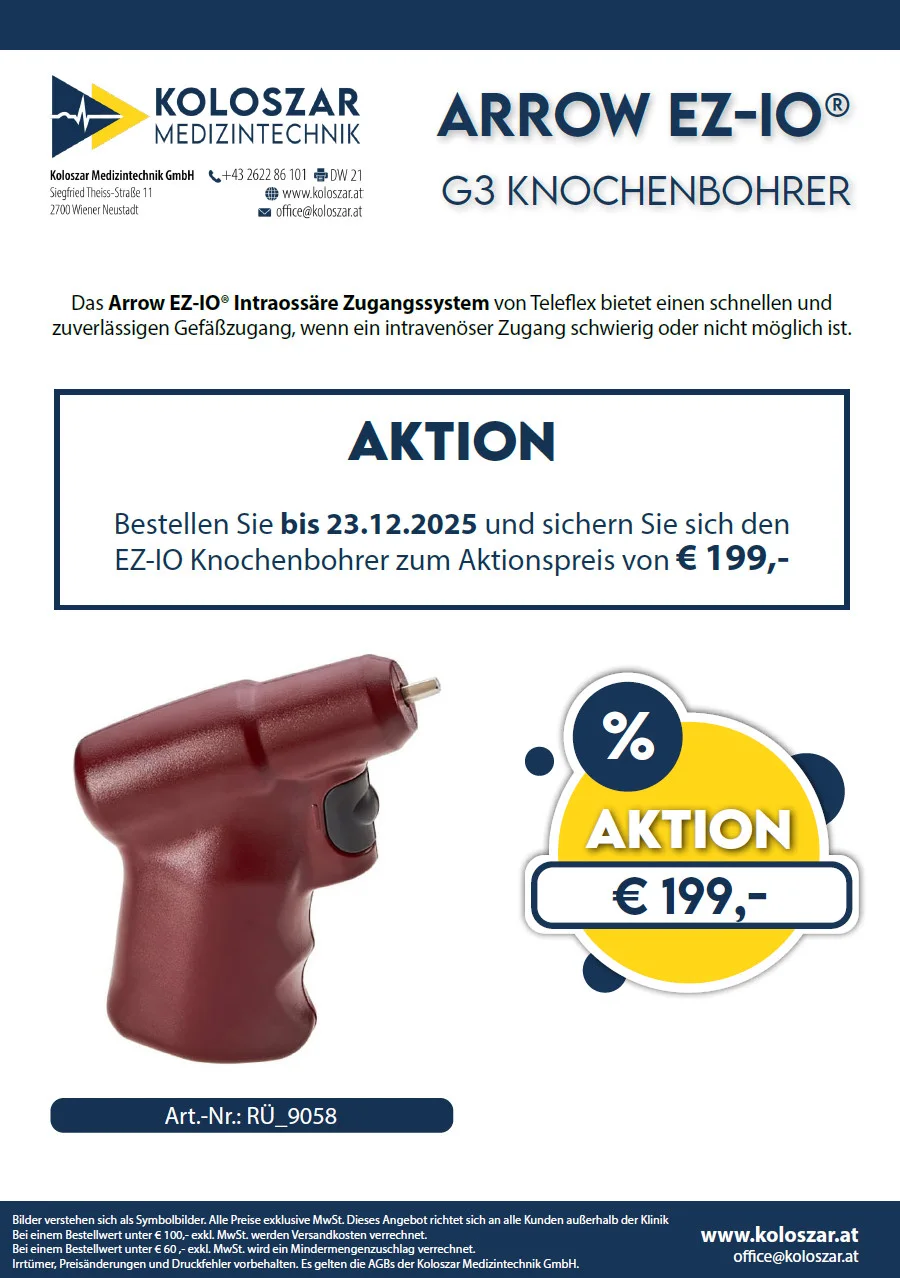 Bestellen Sie bis 23. Dezember 2025 und sichern Sie sich den EZ-IO Knochenbohrer für nur €199,-.